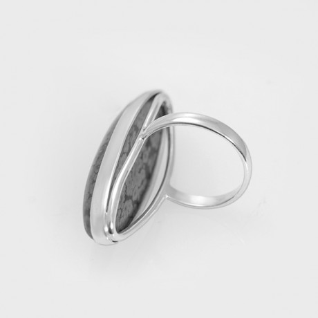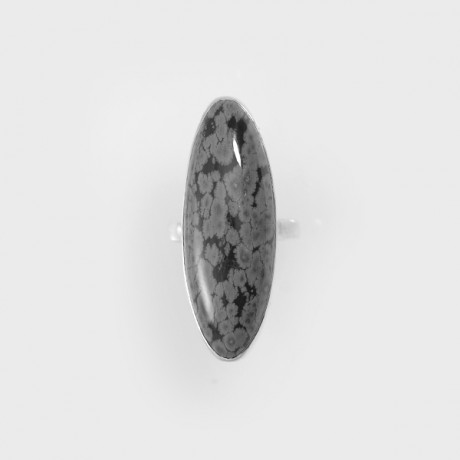 Кольцо с обсидианом. Обсидиан рожден в самом сердце нашей планеты - это магматическое стекло, минерал вулканического происхождения, который отличается ярко выраженной и насыщенной палитрой. Снежный обсидиан - одна из самых красивых разновидностей камня. Мощная энергетика этого камня поможет воплотить в реальность самые заветные желания. Если человек очень хочет чего-то добиться, жаждет перемен в жизни, то ему надо начать носить обсидиан - камень поспособствует достижению целей. Оберег из обсидиана защитит от негатива, различных сглазов и неприятностей.